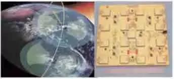 星载SAR 具有在太空轨道对地球目标进行观测和成像的功能,在军/ 民用领域得到越来越广泛的应用。新一代星载SAR的分辨率已能达到亚米级,功能越来越强,设备体积也越来越庞大。由于卫星有效载荷的体积和质量受到严格限制,采用SIP技术研制生产星载SAR相控阵天线需要的大量多通道集成化接收/发射系统及微波组件成为降低卫星有效载荷体积和质量的有效途径。图14所示是美国采用SIP 技术研制的应用于可跟踪地面移动目标的星载GMTI/SAR雷达的多芯片子系统组件。