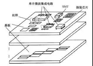 MMCM技术是在HMIC技术基础上发展起来的新一代微波电路封装和互连技术,它是在采用多层微波电路互连基板的基础上,将多个MMIC芯片、专用集成电路(ASIC)芯片和其他元器件高密度组装在微波电路互连基板上,形成高密度、高可靠和多功能的微波电路组件。由于采用了高密度互连基板和裸芯片组装,有利于实现组件或子系统的高集成化、高频和高速化,以及实现电子组装的高密度、小型化和轻量化。